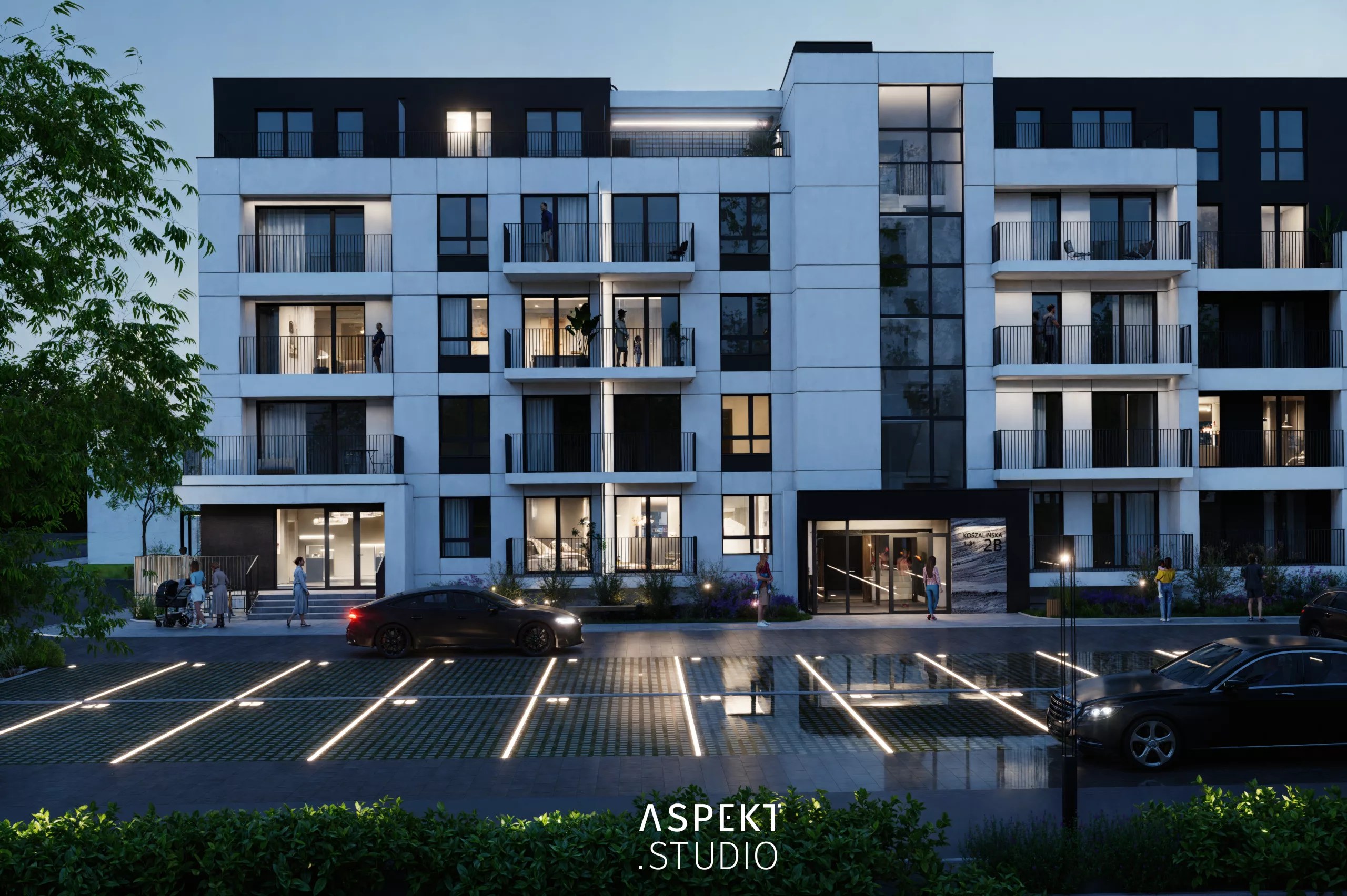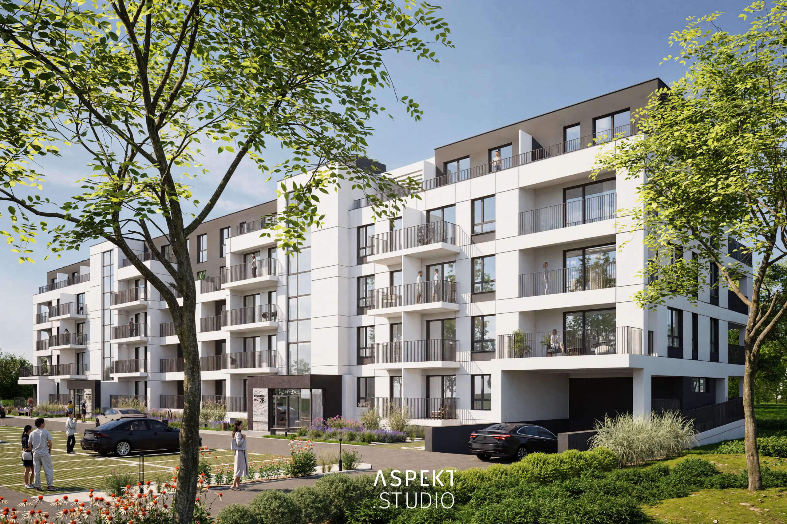 Projekt budynku wielorodzinnego w Słupsku przy ul.Koszalińskiej. Nowoczesna architektura mieszkaniowa z balkonami, loggiami i tarasami na dachu, zaprojektowana z myślą o funkcjonalnych układach mieszkań, dobrym doświetleniu wnętrz oraz komforcie codziennego użytkowania. W budynku zaprojektowano również części wspólne, a teren dookoła budynku uzupełniono o liczne nasadzenia. Inwestycja znajduje się obecnie w trakcie realizacji.