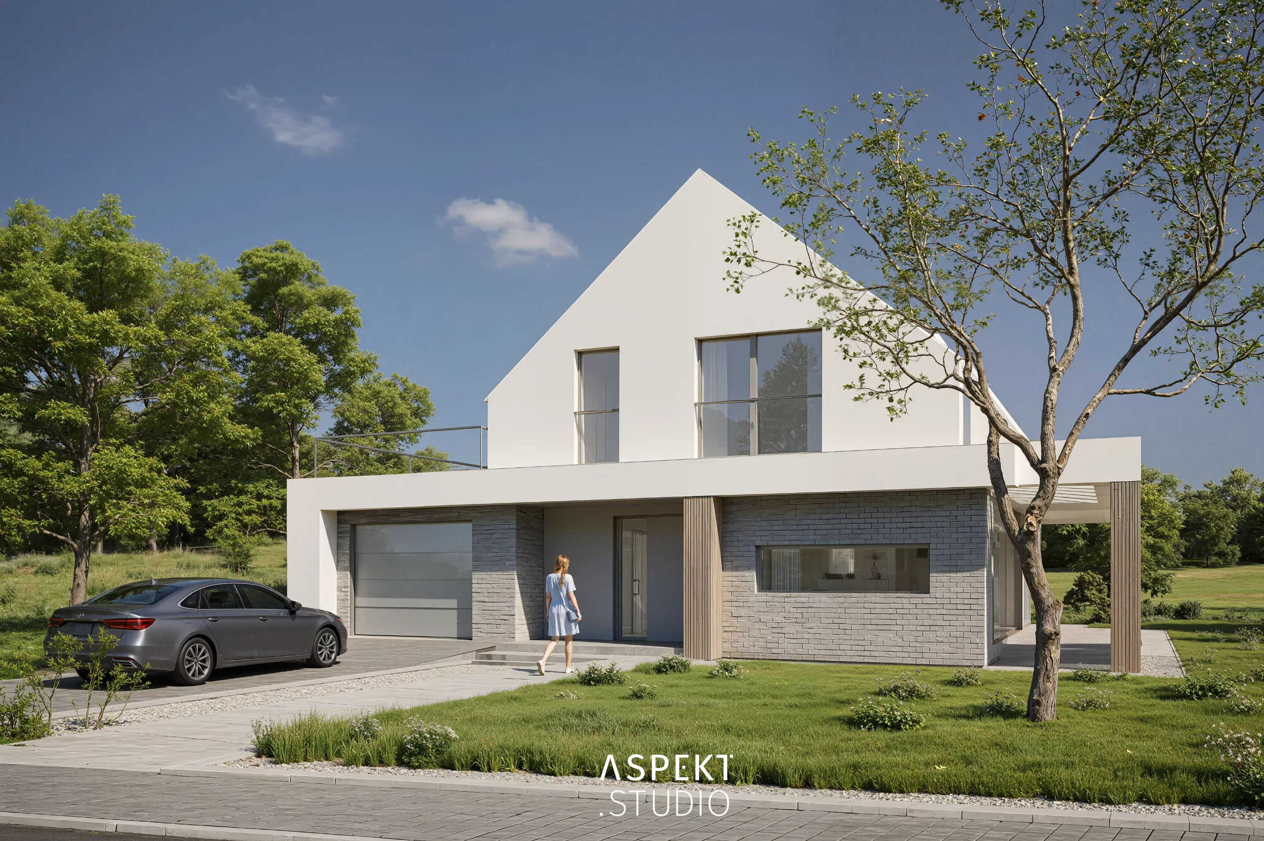 Dom jednorodzinny w miejscowości sąsiadującej ze Słupskiem. Bryła budynku posiada ramę okalająca z dwóch stron, która podkreśla wejście do domu i duży taras, jednocześnie tworząc zadaszenie tych miejsc. W miejscu gdzie jest wejście jest to pełne zadaszenie, a nad tarasem ażurowe. Układ domu został dostosowany do potrzeb i sposobu funkcjonowania właścicieli, zlokalizowany na działce w miejscu optymalnym pod względem stron świata i naświetlenia.